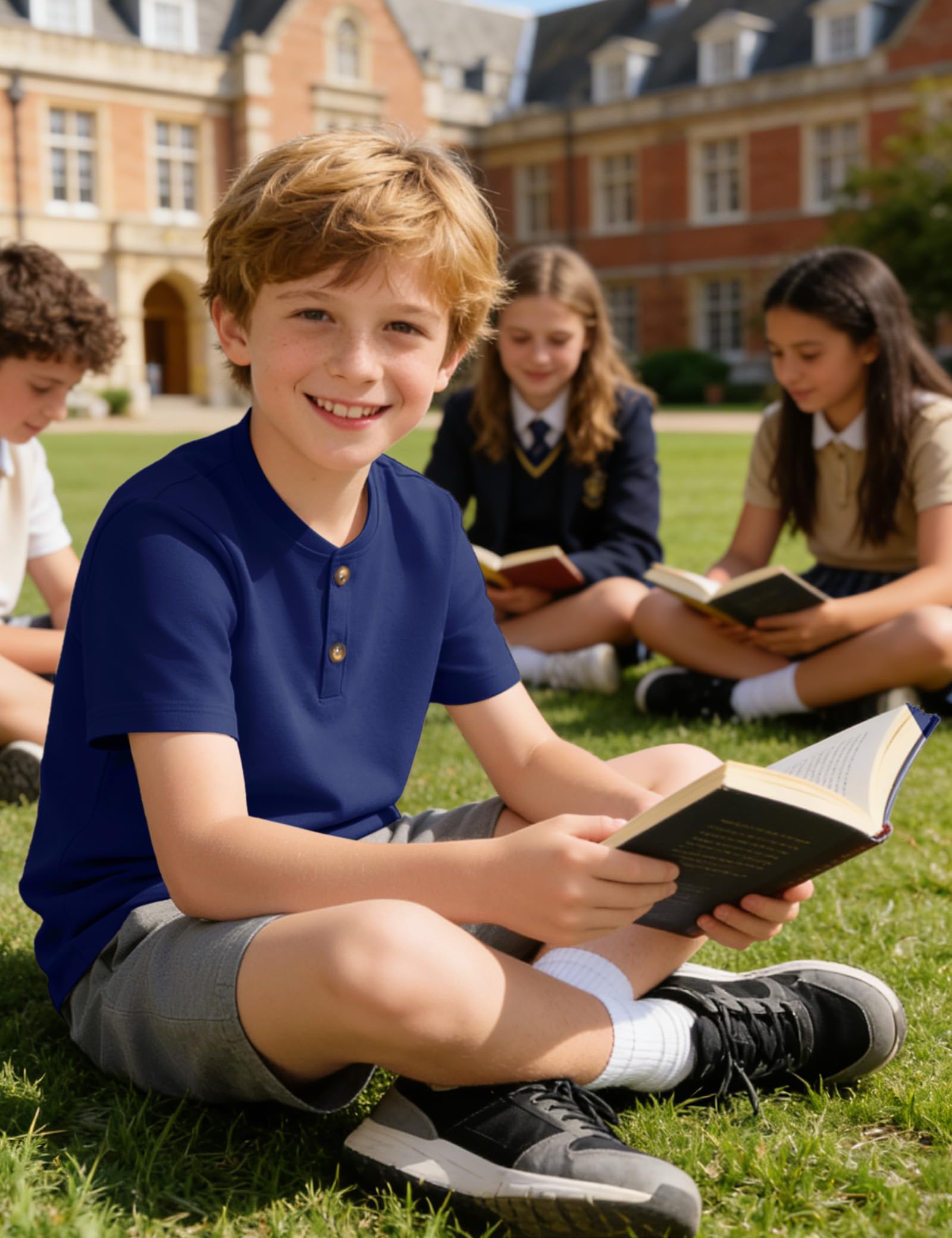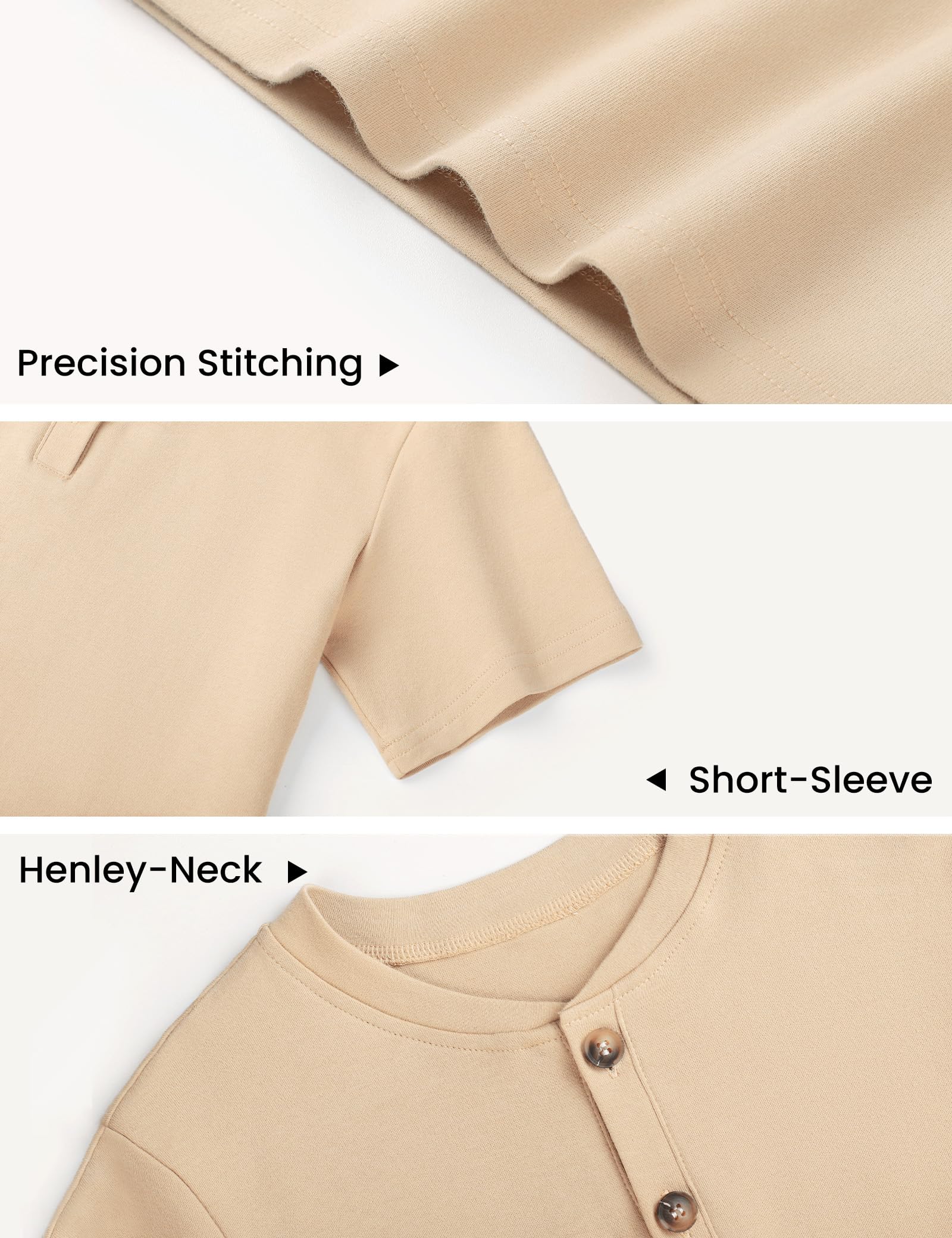 Boys Cotton Henley Short Sleeve Shirt with Button Placket