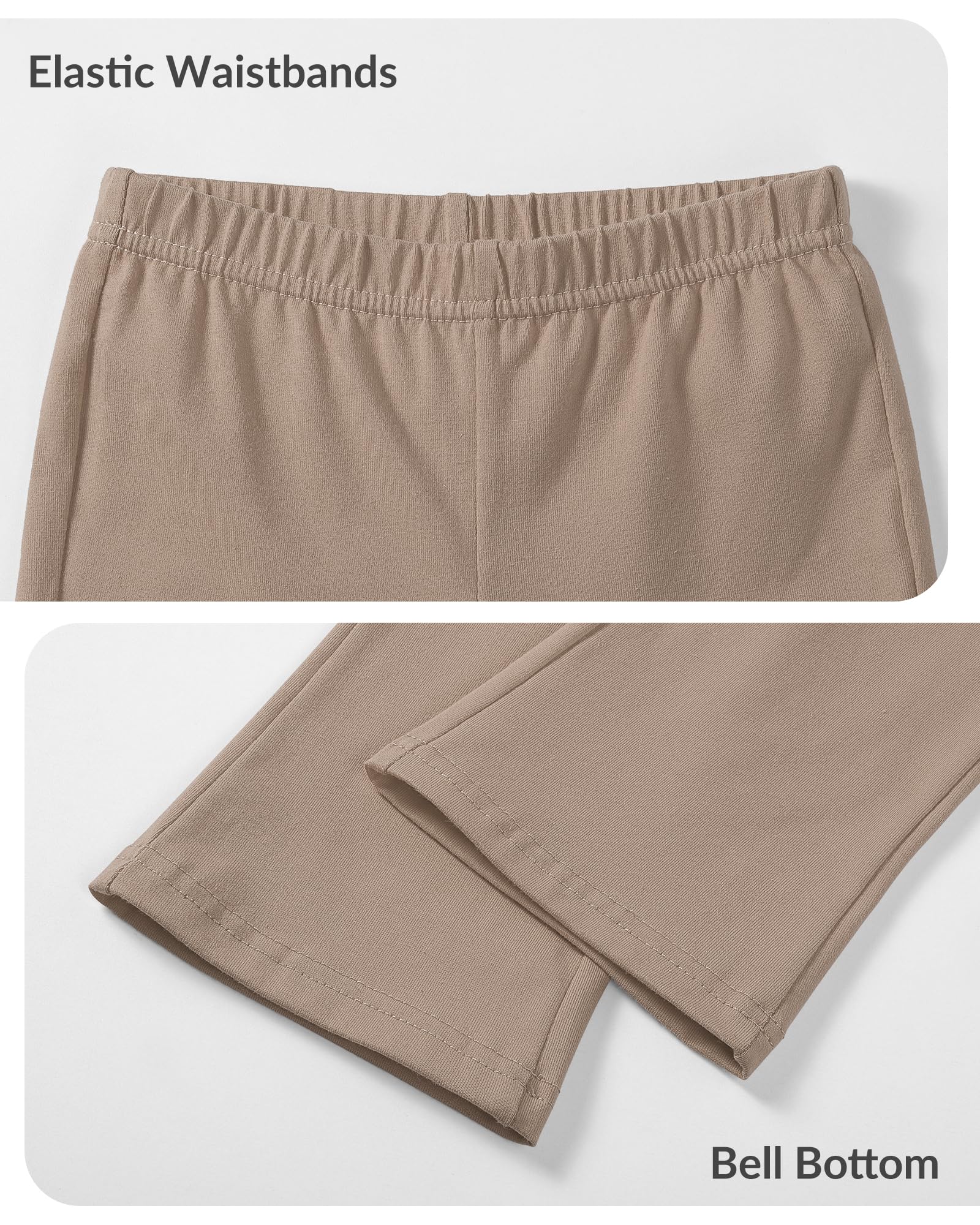 • Girls Bell Bottom Leggings: Stylish baby girls leggings with flare leg design and elastic waist, which offers fashion and comfort, providing unrestricted movement for your kids during various activities.